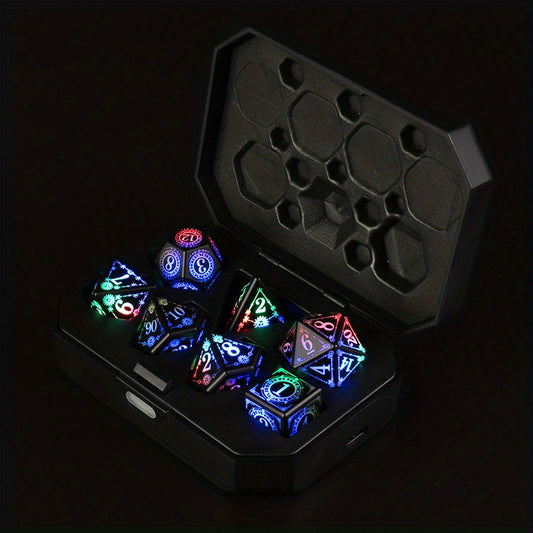 Ultimate RPG Dice Set: 7-Piece USB Rechargeable, Light-Up with Shake Activation & Charging Box