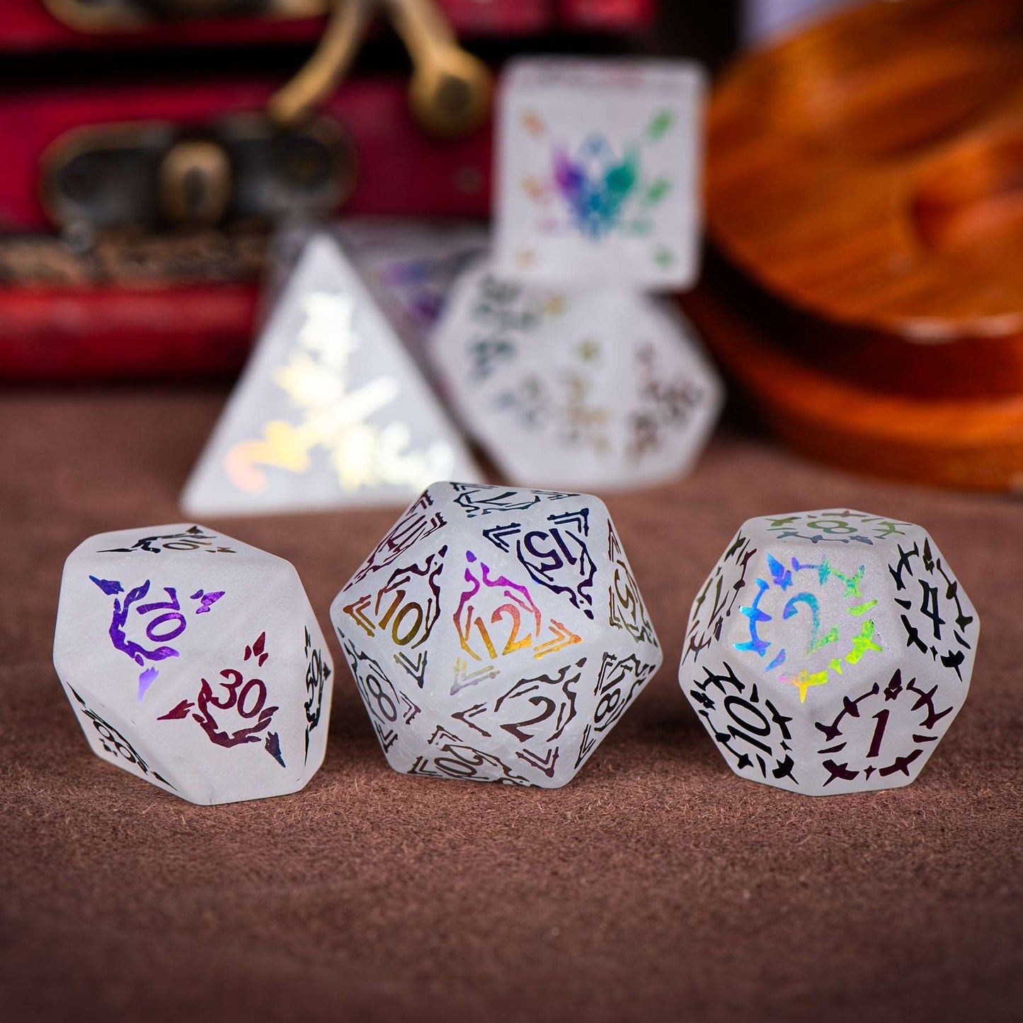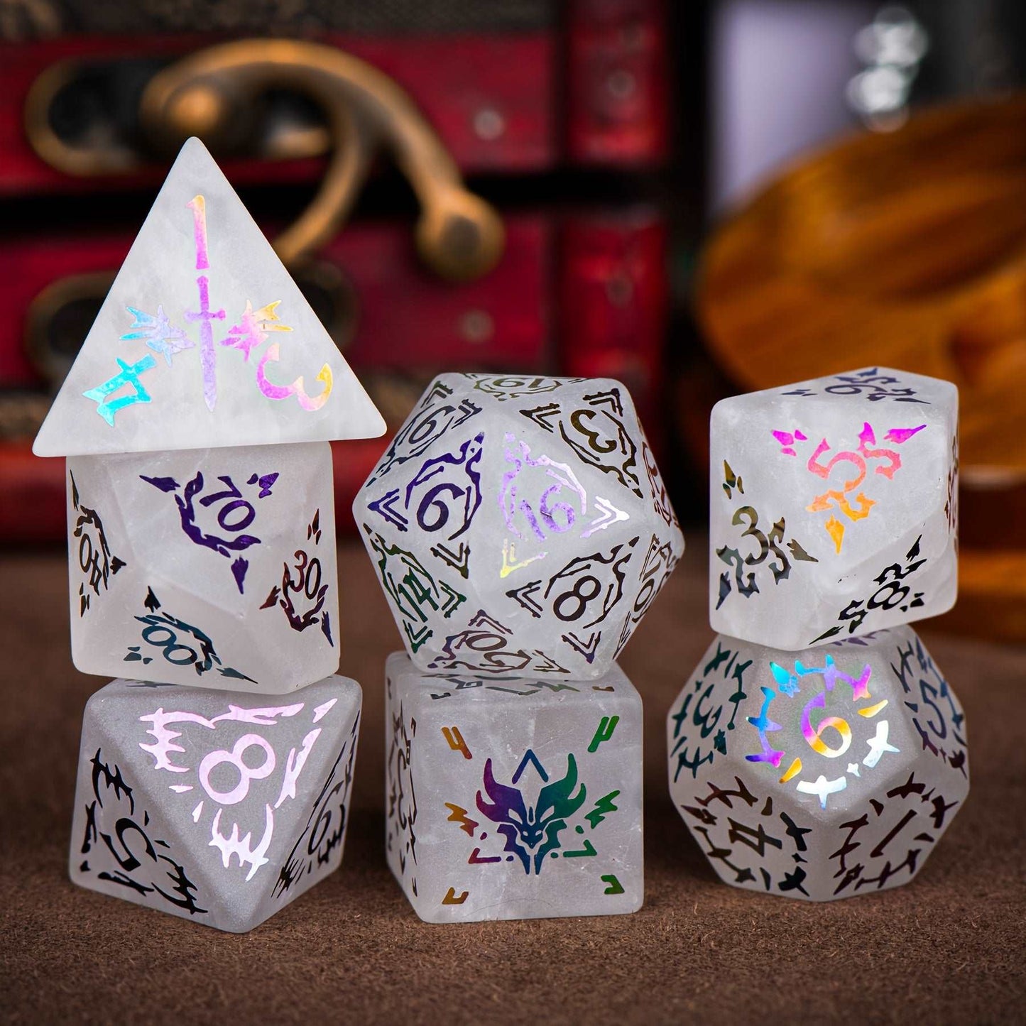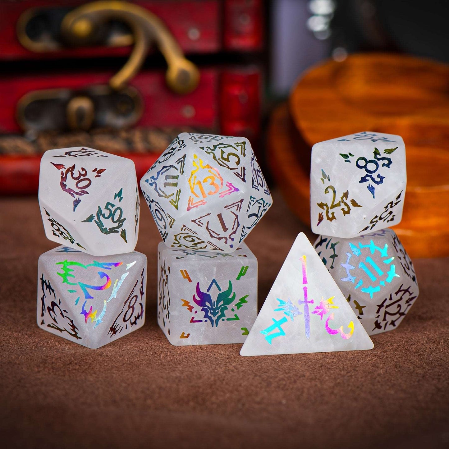 Craftsmanship: We have been specialized in making gemstone dice sets for more than 8 years and have rich experience. Our products cover a variety of rich materials, craftsmanship and unique pattern designs. We have exclusively designed a variety of exquisite patterns, and each one is carefully crafted by hand. , allowing adventurers to experience rich powers and unforgettable moments in the game.
