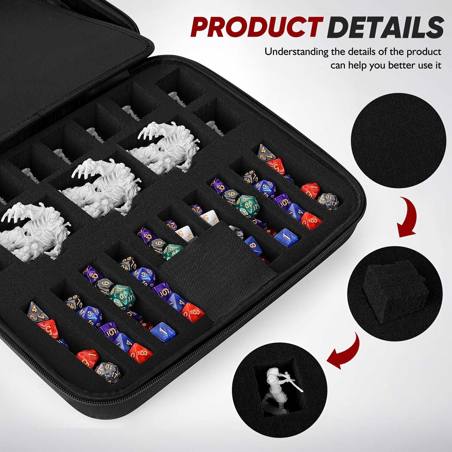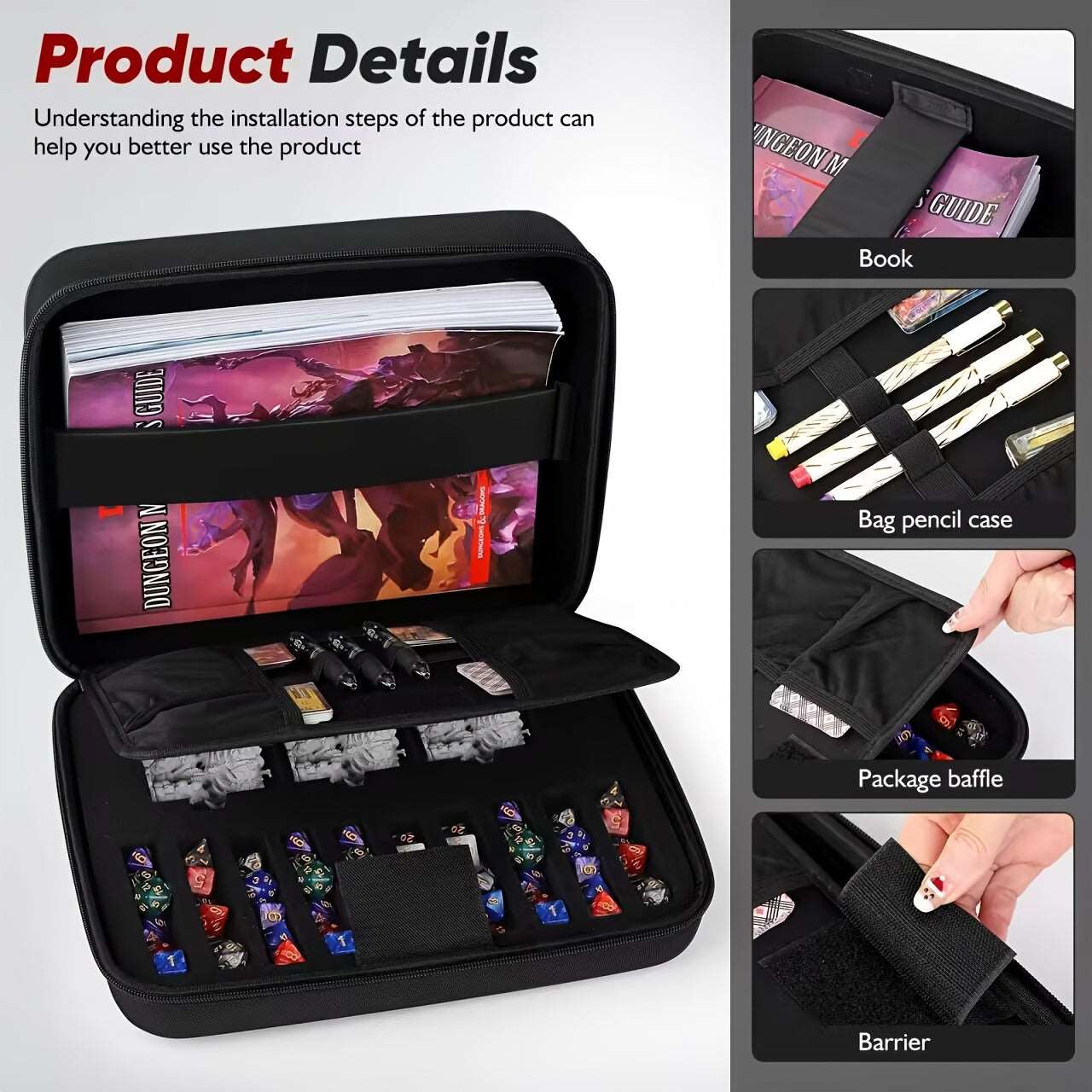 Suitable for dnd dice holders to help you quickly organize and manage your D&D accessories. The Mental Dice Holder with Lower Compartment includes 10 dice storage spaces for 50+ dice. The middle section has dividers for creature and NPC cards and pens, the upper section provides storage for books and guides, and the spongy lower section is a DIY character modelling area. The carefully organized dice organizer keeps your gaming table tidy and efficient.