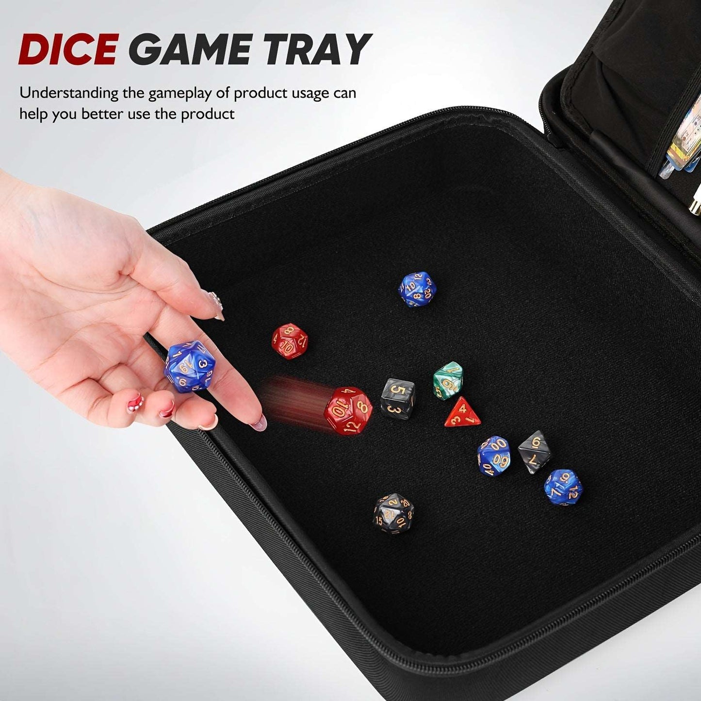 With removable slots, you are free to assemble a display area that fits character models of different sizes and shapes. Each model has its own dedicated place for the DND Dice Box to better display your range of Dungeons, Dragon Dice and DND accessories. The top of the dice bag also doubles as a game tray, so you can play dice tower games wherever you go.