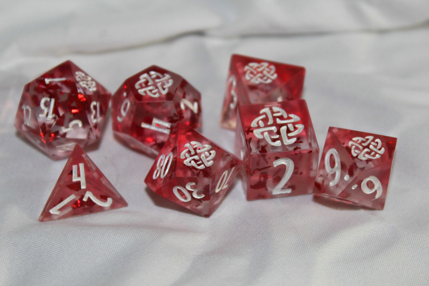 Full set of standard size handmade D&D dice.