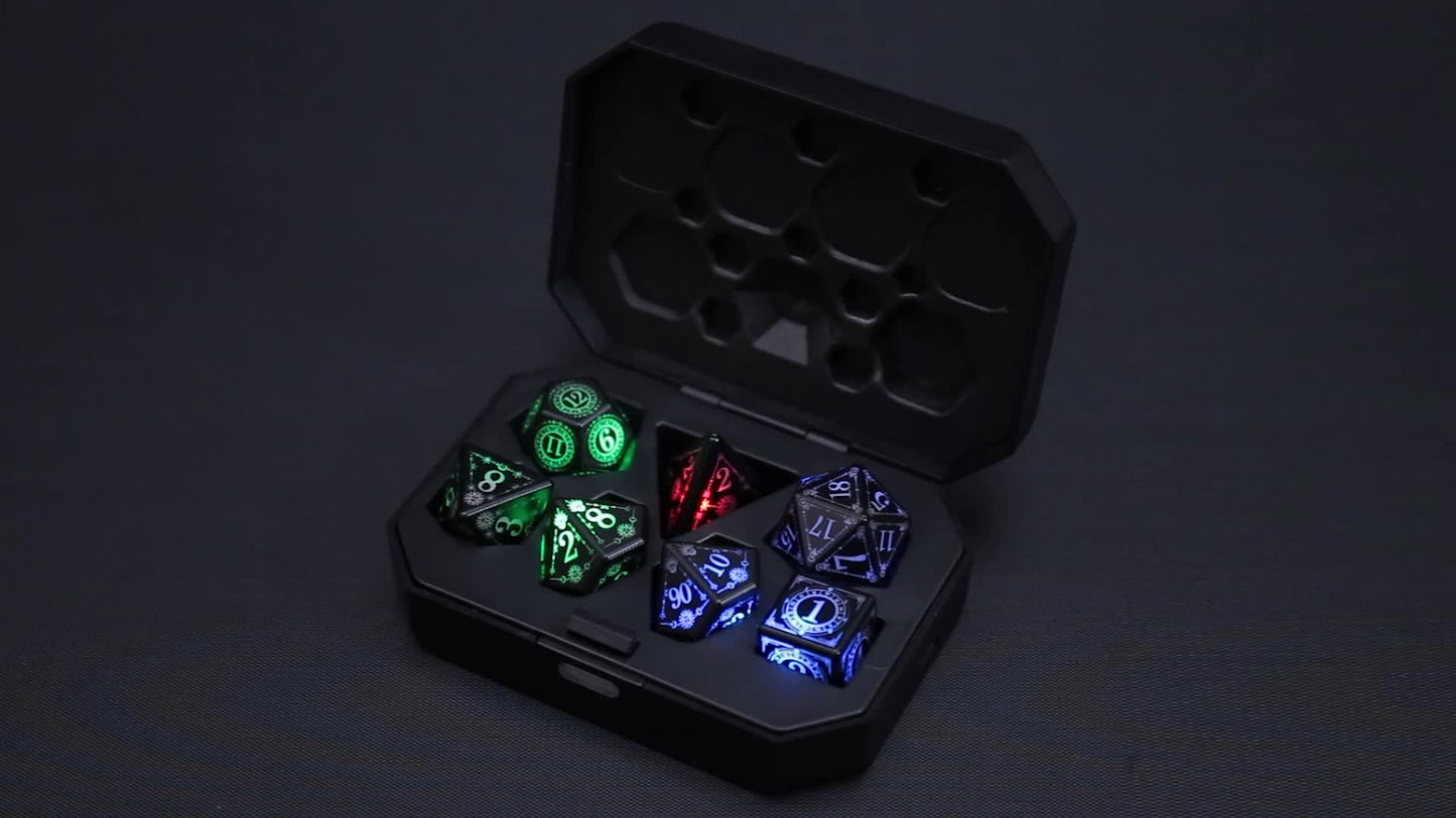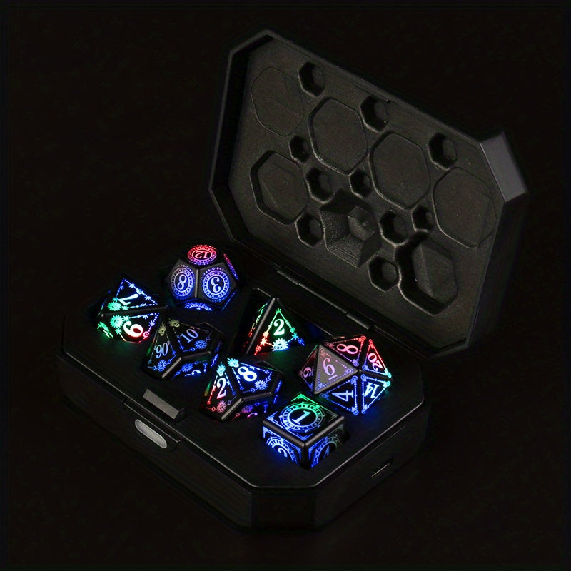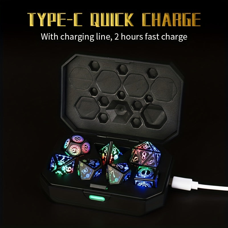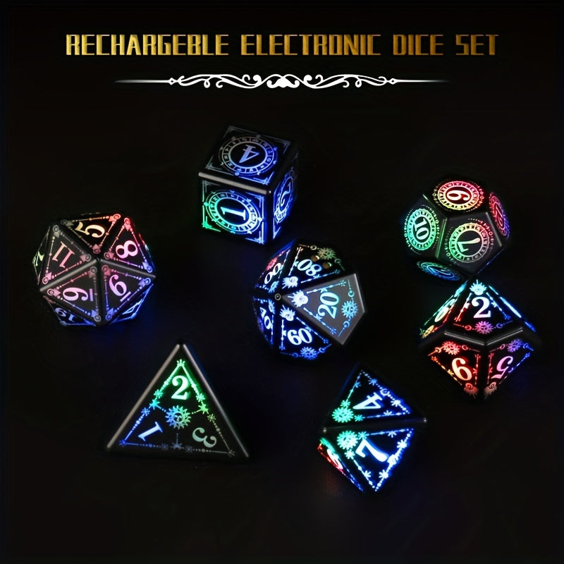 Ultimate RPG Dice Set: 7-Piece USB Rechargeable, Light-Up with Shake Activation & Charging Box